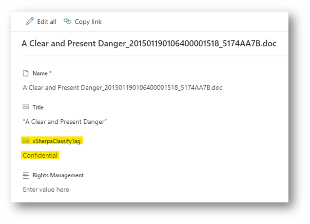 The classified documents should now include the xSherpaClassifyTag property with the associated classification value