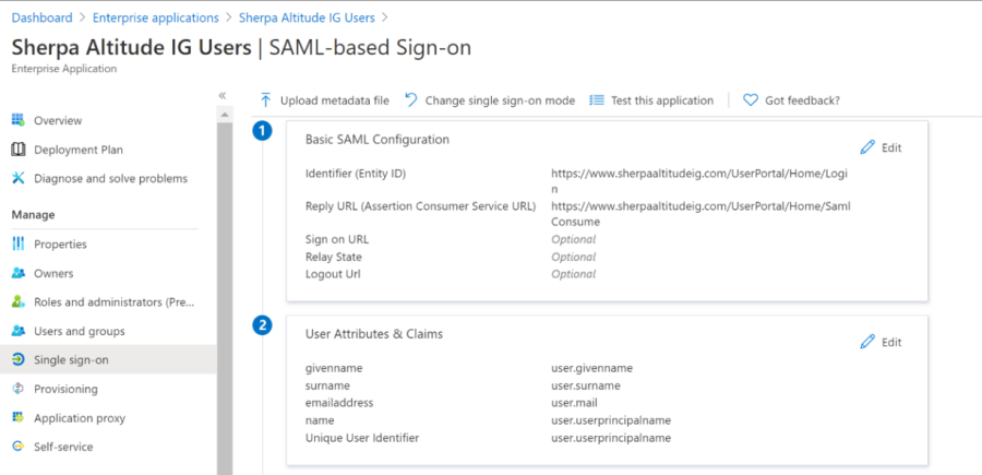 To access the portal where Data Owners review and label their content, Discover requires that single sign-on (SSO) be configured. If your SSO provider is Microsoft Azure, the screen capture below shows the portal configuration settings: