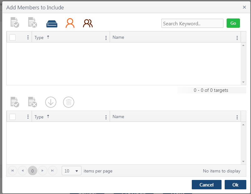 Each group allows you to enter a name and comments to help you organize your list of groups. Static groups require a list of members to include in the group and an optional list of exclusions. Each entry in these lists is either a person or a device. To add a member to one of the lists, select the 'Add Members' option in the Action toolbar. This will show the add members view.