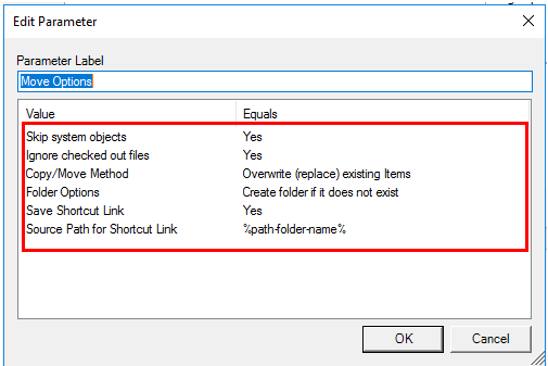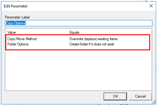 For both the copy and move actions, the ‘set destination’ option is identical.