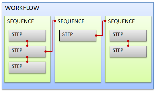 Loop - Similar to the goto step, execution jumps to a sequence with the same context. Once the execution returns a decision is used to determine whether to call the sequence again or to continue the flow of execution within this sequence.