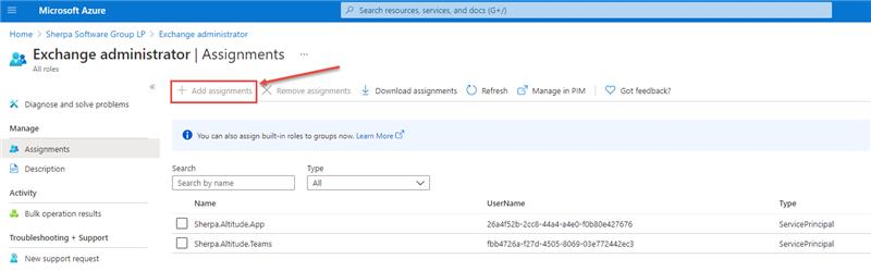 After selecting a role, double click on it to view its Assignments then select 'Add Assignments' and search for the registered app:
