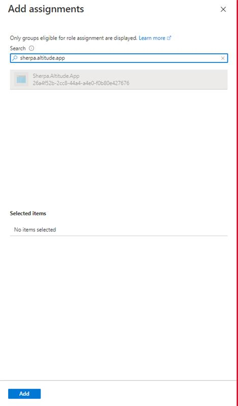 Type the name of the registered app and click the 'Add' button at the bottom: