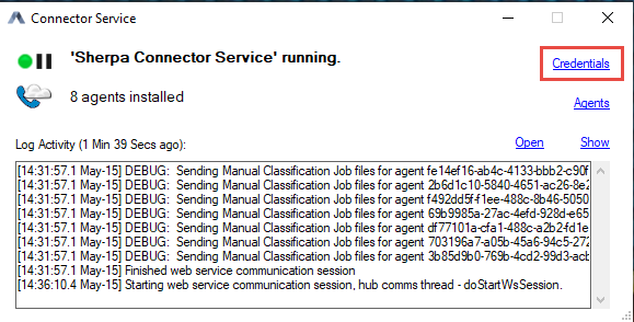 Once the application is open, click on the 'Credentials' link in the status tool window:
