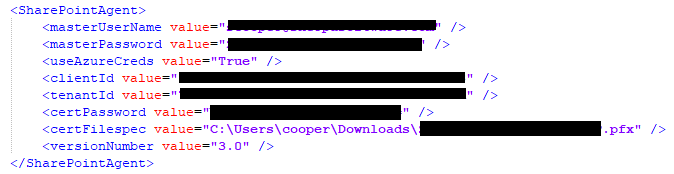 You can validate that the updated agent settings have been stored properly by opening the Credentials.config file in notepad. This file is located in the folder: C:\$Sherpa Software\Altitude\Connector. For each agent, the config file will contain an entry similar to this: