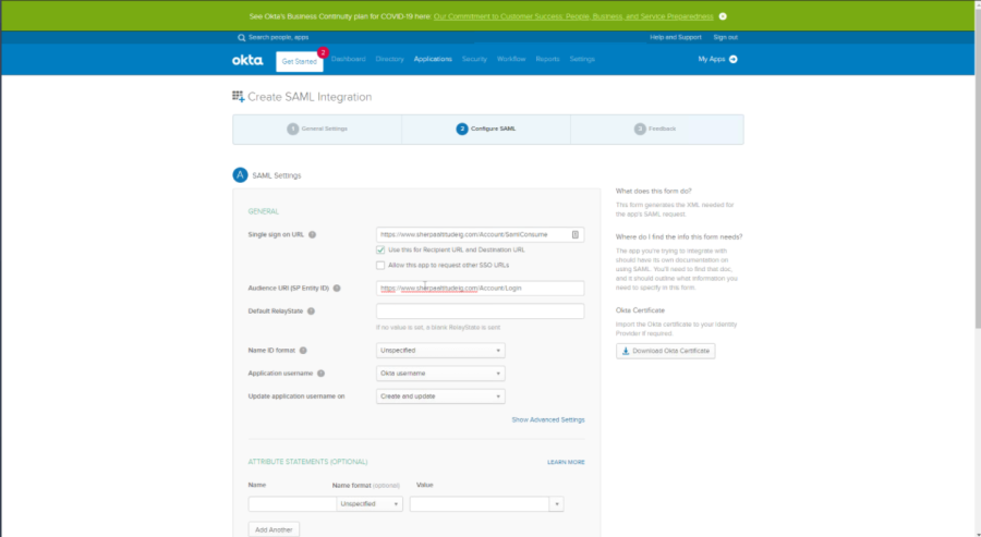 In the identity provider endpoint box, paste the 'Identity Provider Single Sign-on URL' that you copied during the Okta setup process
