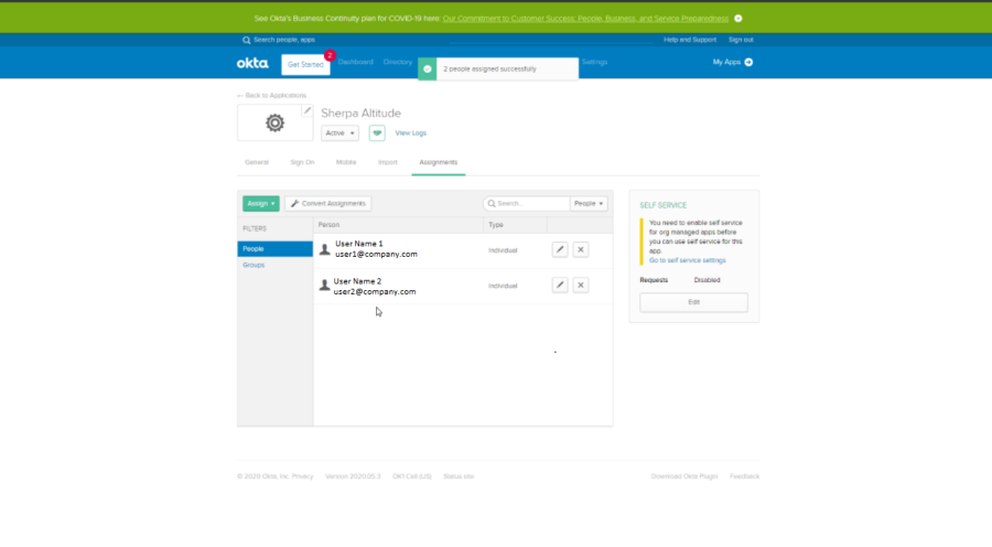 At the top of the page, click on the Assignments tab and add any users who will be granted access to the Discover dashboard. Note, the user accounts that you add as 'assignments' must also have been added on the configuration page of the Discover dashboard. The account that you create in Discover will determine the role that the user is assigned when their SSO sign-on is processed.