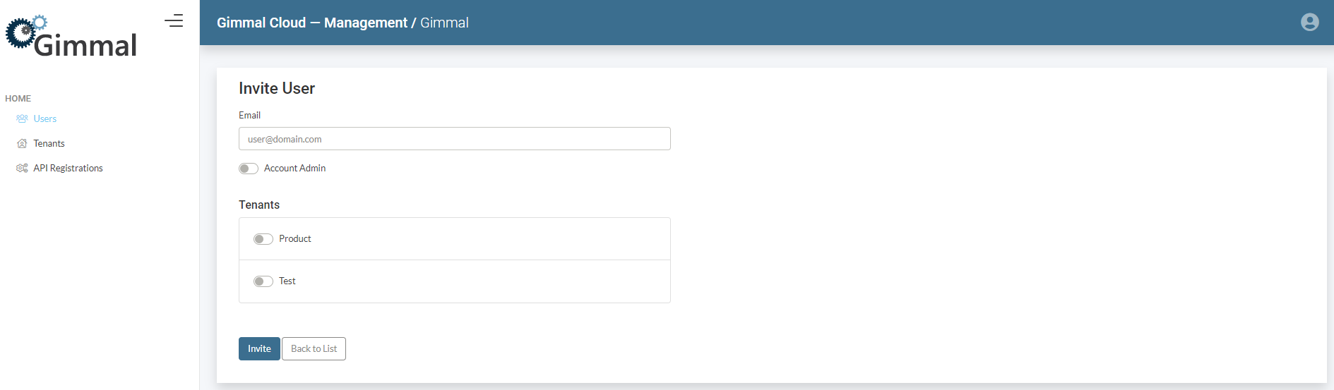 - Select "Invite User"