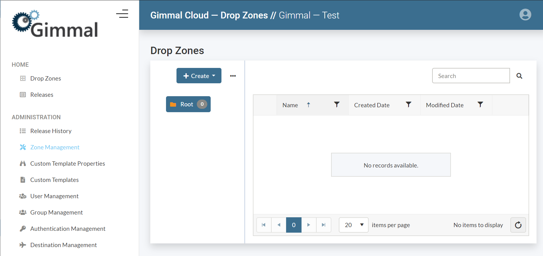 The Administration functions for Cloud Drop Zones are listed on the right sidebar of the Application under Administration. The correlating help topics below can guide you through specific administration options. In addition, go to Getting Started for a quick-start list of steps for creating your first Drop Zone!