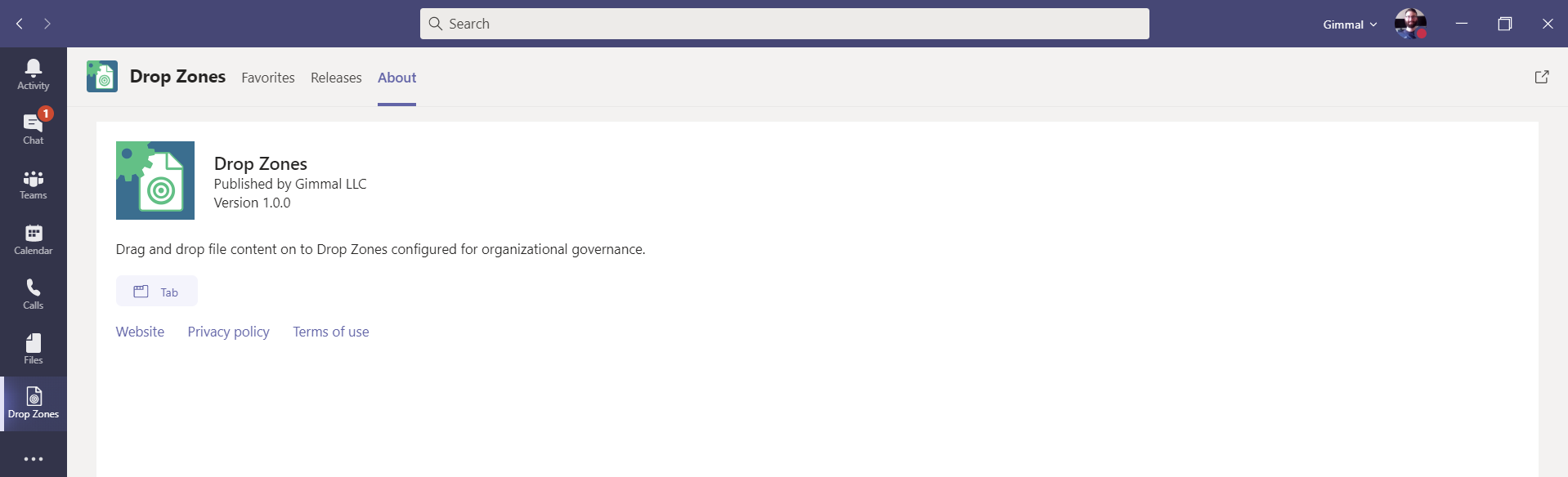 Gimmal Drop Zones is now available as a Microsoft Teams app! Users can drag and drop files onto their favorite Drop Zones directly within Microsoft Teams.