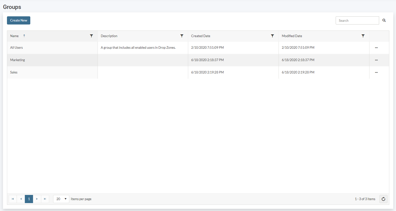 Here, Groups can be viewed, added, removed, and edited for Gimmal Drop Zones.