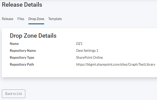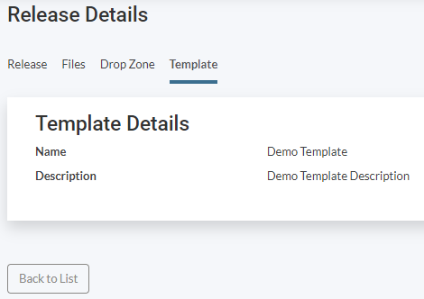 - You can see details on the release, files, Drop Zone and Template associated with the release.