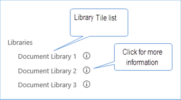 The Library List Navigation web part provides a way to order, show, or hide library tiles within the Library Tile View web part. Refer to Configuring Document Center Web Parts for more information.