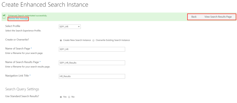 - Search Query Settings: If you click "Hidden?" you cannot override or edit the Search Query Settings on the Create Enhanced Search Instance page.