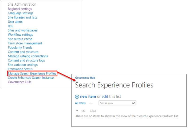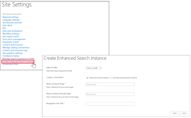 The Search Experience Profile (SEP) provides a reusable, interactive configuration interface for implementing a custom search experience. The SEP enables you to customize search queries, results, refiners, and navigation elements of the SharePoint search component, enabling end users to more easily narrow down their searches and obtain the results they need. You can create multiple SEPs, but they can only be generated locally to the site in which Enhanced Search has been activated.