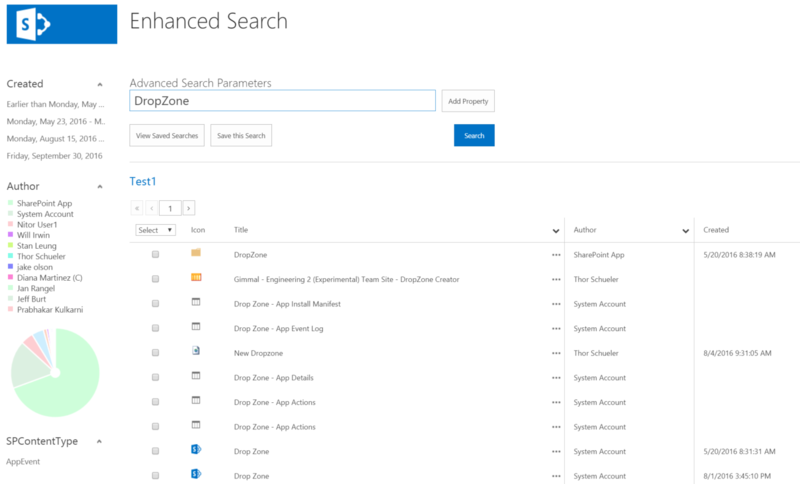 - Enter your desired search criteria in the Advanced Search Parameters section (if the Enhanced Search Box Advanced Control display template has been applied by the administrator), and click Search. Confirm that the results you're presented with are satisfactory.