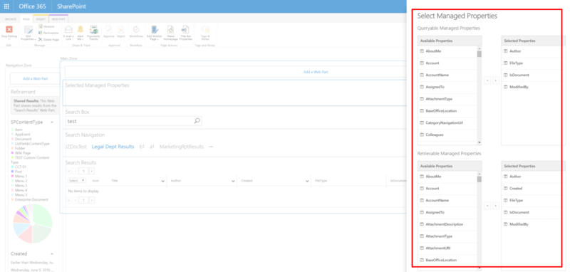 - For more information on specifying the managed properties for this setting, see Appendix C: Specifying Content Types for Managed Properties (link). If you do not see your managed properties in the Available Properties list, see Appendix F: Enhanced Search SharePoint Lists and Libraries (link). For managed properties in SharePoint Online/O365, see Appendix I: Managed Property Configuration Tips for O365 (link).