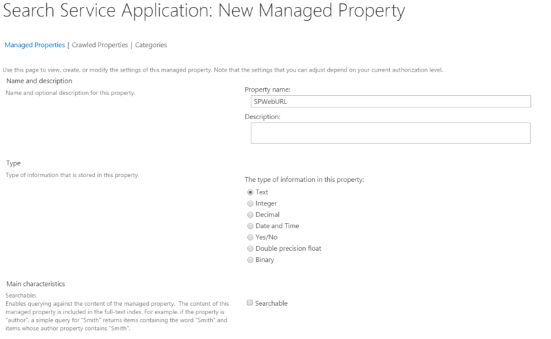 - Create the SPWebURL managed property (SharePoint 2013 on-premises only)