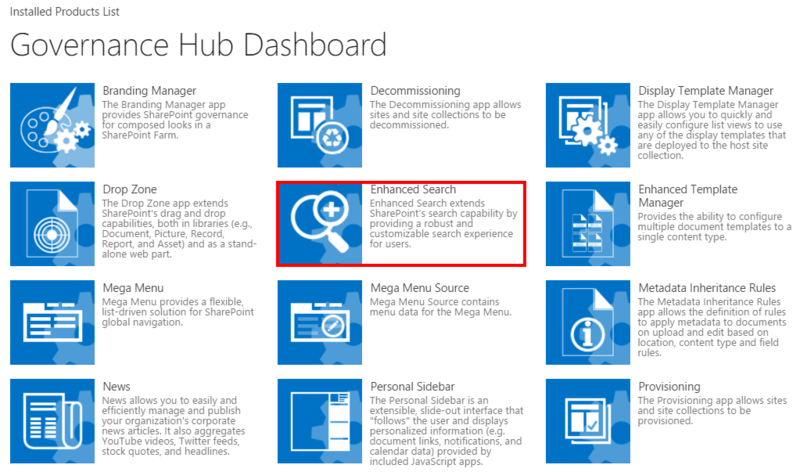 - The local site where Enhanced Search is deployed, using the Governance Hub