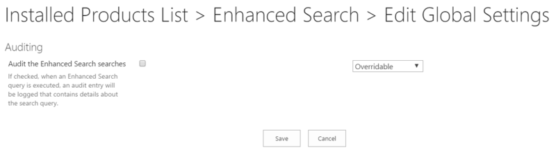 - Select Overridable to override the Audit setting in a local Enhanced Search site via the Governance Hub local settings.