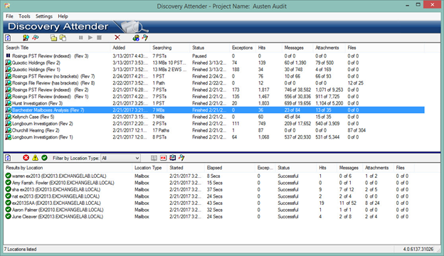 The search wizard also allows users to make the most of their searches by providing a variety of keyword and result options. Once a search has been created using the search wizard, Discovery Attender will begin processing the individual tasks concurrently.