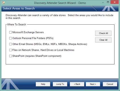 Discovery Attender employs an easy-to-use Search Wizard to assist users in defining the search criteria and identifying the types of results to return. Among the criteria that can be used for searching are:
