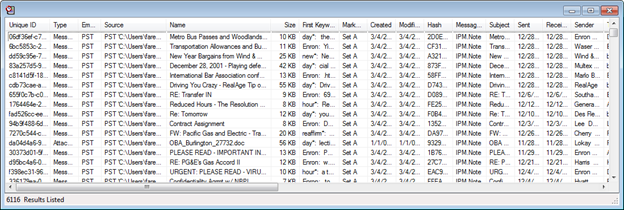 Discovery Attender has the ability to search within a set of results using date, address or, (if the optional index was created) keyword filters. These filters are useful for analyzing and organizing data as well as helping to automate such tasks as excluding privileged data or false positives from your result set.