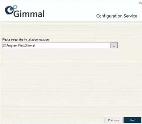 6. On the Installation Location screen, enter or select the installation location for the Configuration Service application. The location shown in the screenshot is the default location. To change the location, click the (...) button and navigate to and select the correct location.