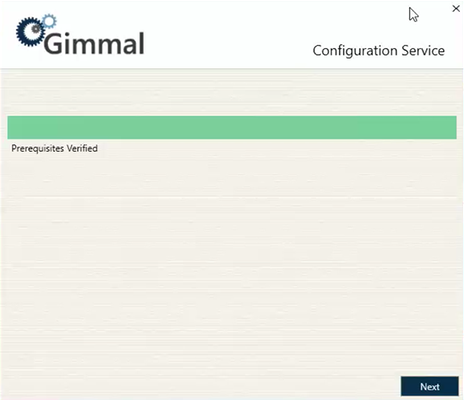 On the main installation screen, click Install for the Configuration Service. The installer wizard opens on the “Prerequisites Verified” screen, where it verifies that all of the prerequisites have been met for the installation.