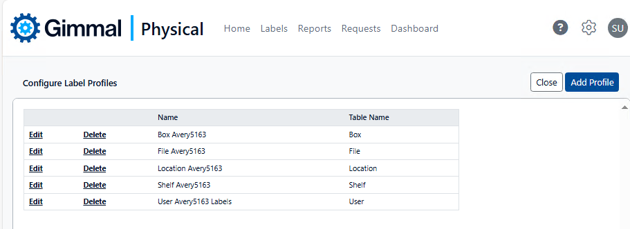 Gimmal Physical offers the option to create your own label templates using different stock or different layouts. To do so, you must first configure a new label profile.
