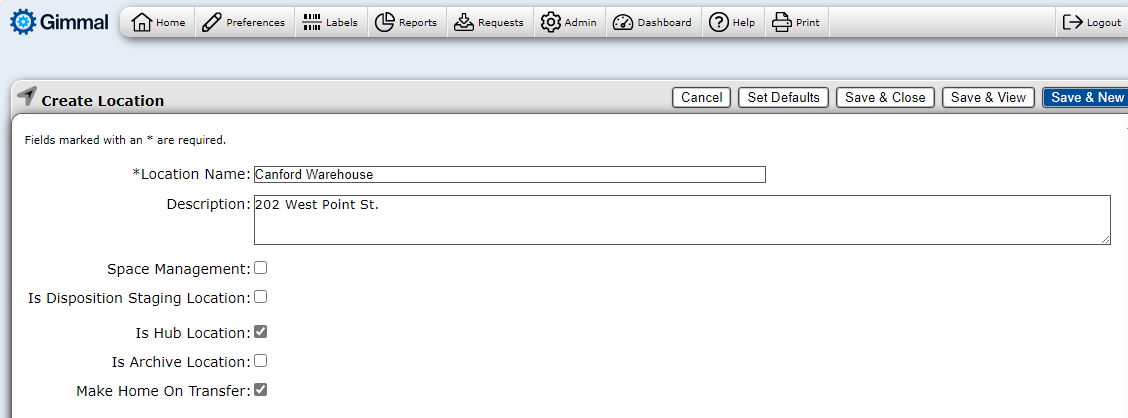 The “Hub Location” checkbox must be enabled for any Location where costs will accrue for Box storage.