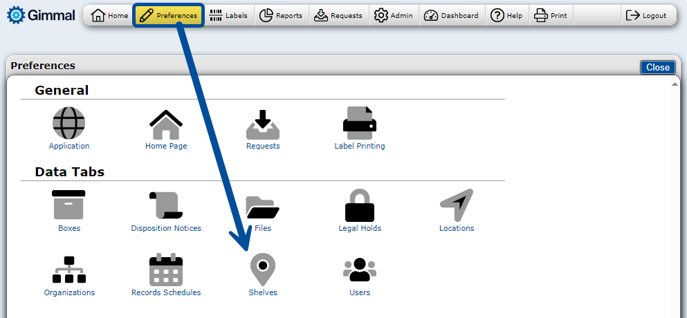 Click on the Shelves tab from the Home Page.