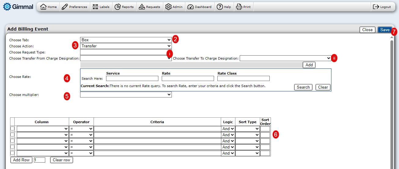 Request Type can used as a cost factor when setting up Transfer rates. To do so, select from the ‘Choose Request Type’ drop down list.