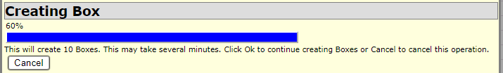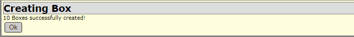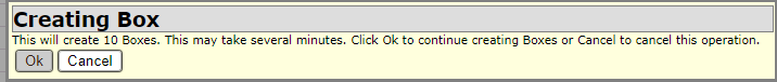 A pop-up box will appear to verify the bulk creation. For example, creating 10 boxes in bulk create will show: