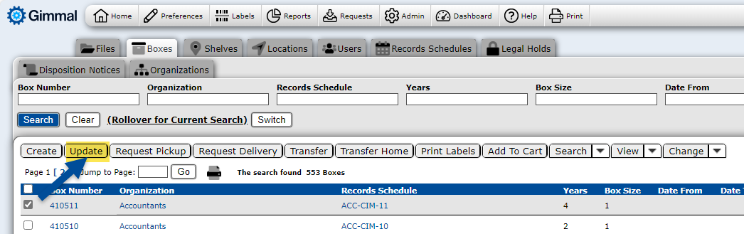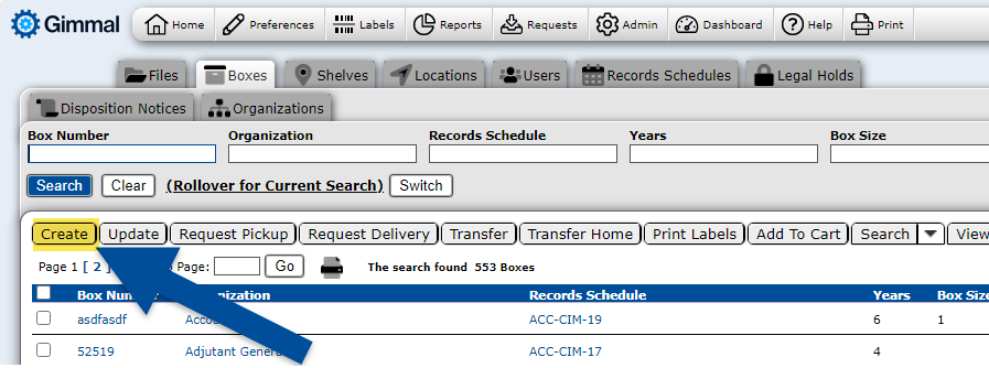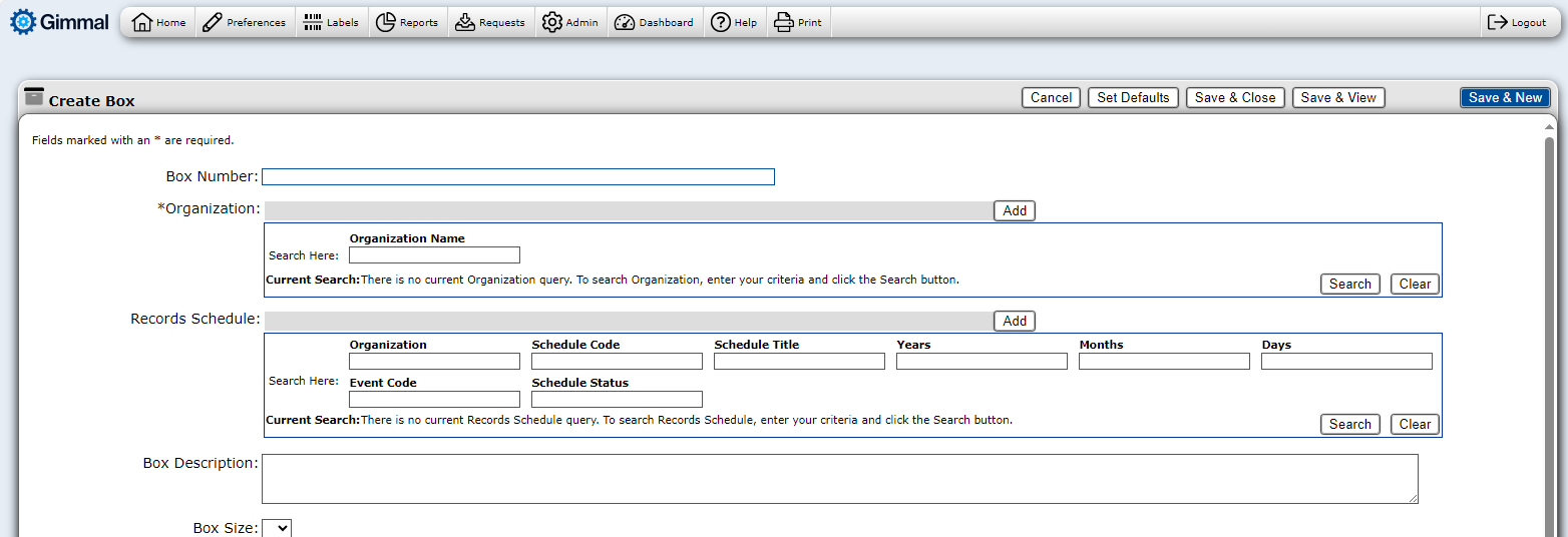 There are many ways to create and update new records in Gimmal Physical. This article covers creating and updating individual records within the user interface. Before beginning, it may be helpful to review Preferences to help make data entry more efficient.