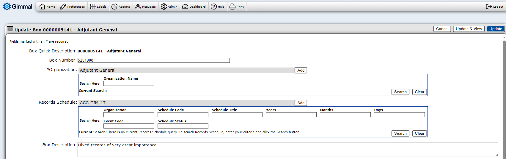 Update & View will save the changes and keep you in the view mode for the page. This is helpful if you need to perform an action (e.g. transfer) on the item after it has been updated.