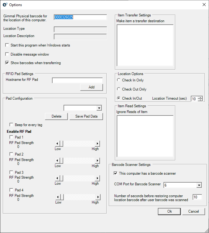 Enter the Gimmal Physical barcode for the item that the reader represents in the ‘Gimmal Physical barcode for the location of this computer’ textbox.