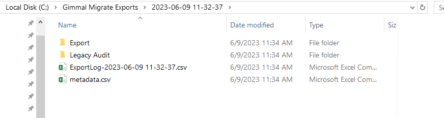 Recommendation: For larger migrations where the work may be broken up into several batches, create an individual export folder for each batch. It will be easier to keep track of them this way rather than relying on the time stamp folder name.