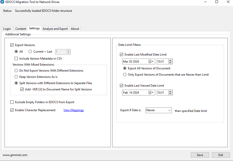 If possible, have an eDOCS DM environment that is performant or load-balanced from which you are exporting. If the environment is unhealthy or unstable, this will directly impact the tools’ ability to extract content from the source system.