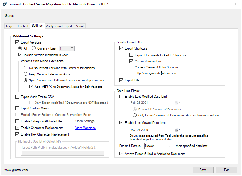 Gimmal - Content Server Migration Tool to Network Drives - User and install Guide