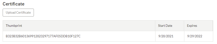 Verify the Thumbprint, Start Date, and Expires.