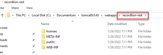 As a precautionary step, do not delete the previously used recordlion-rest file when replacing it with the new recordlion-rest file, just simply rename it. (below it has been renamed to recordlion-rest VERSION 5.0).