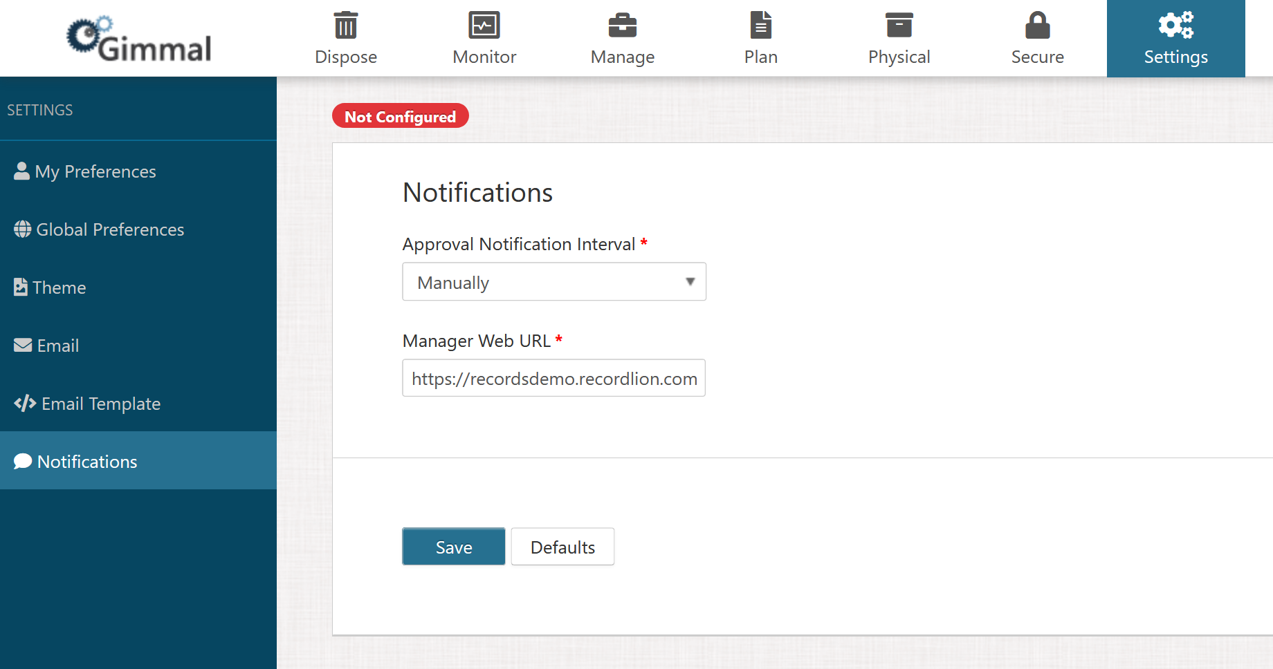 To send out notifications, you must configure a valid email server that will be used to send the Records Management notifications. You can set up your email server by performing the following steps: