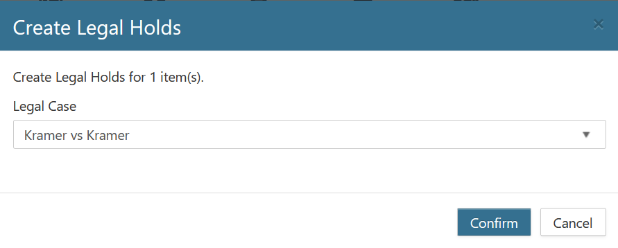 Select a legal case and click the Confirm button.