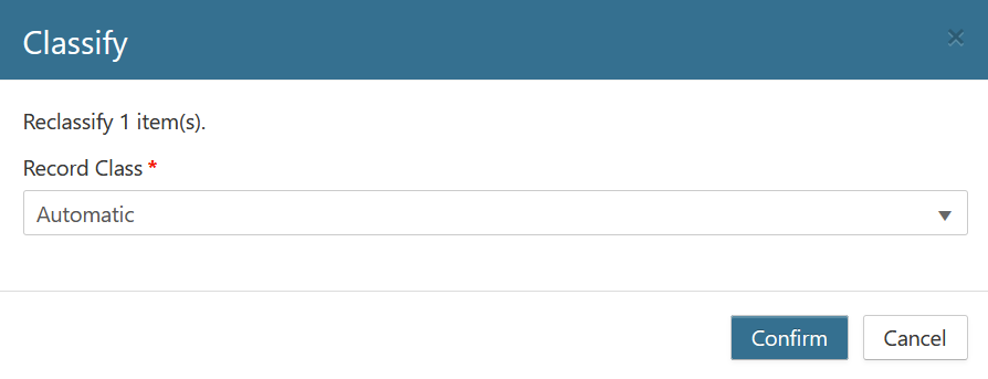 When the Classify button is selected, a list of Record Classes will be displayed.