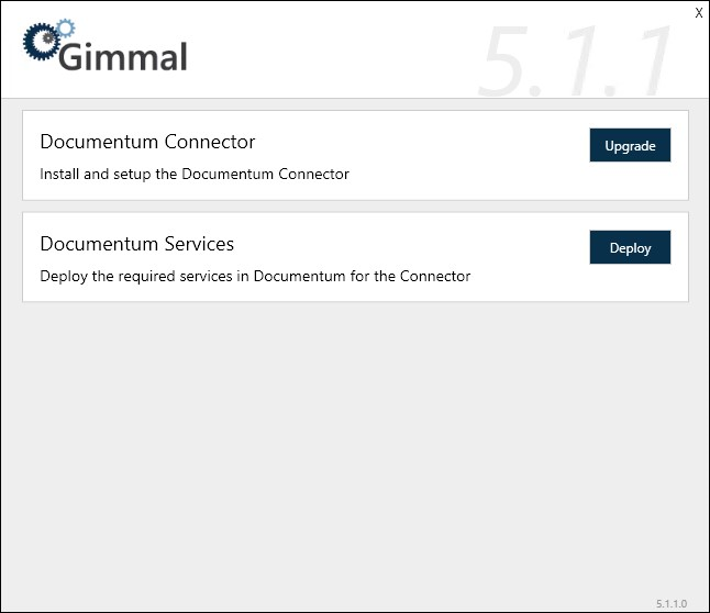 Download the Documentum Connector ISO (Documentum Connector v5.1.1.iso ) from the Gimmal Software Downloads site. Once in the Gimmal Software downloads site click on the Documentum Connector link to see the Documentum Connector downloads. If you do not have access to the software download site, please contact Gimmal Support.