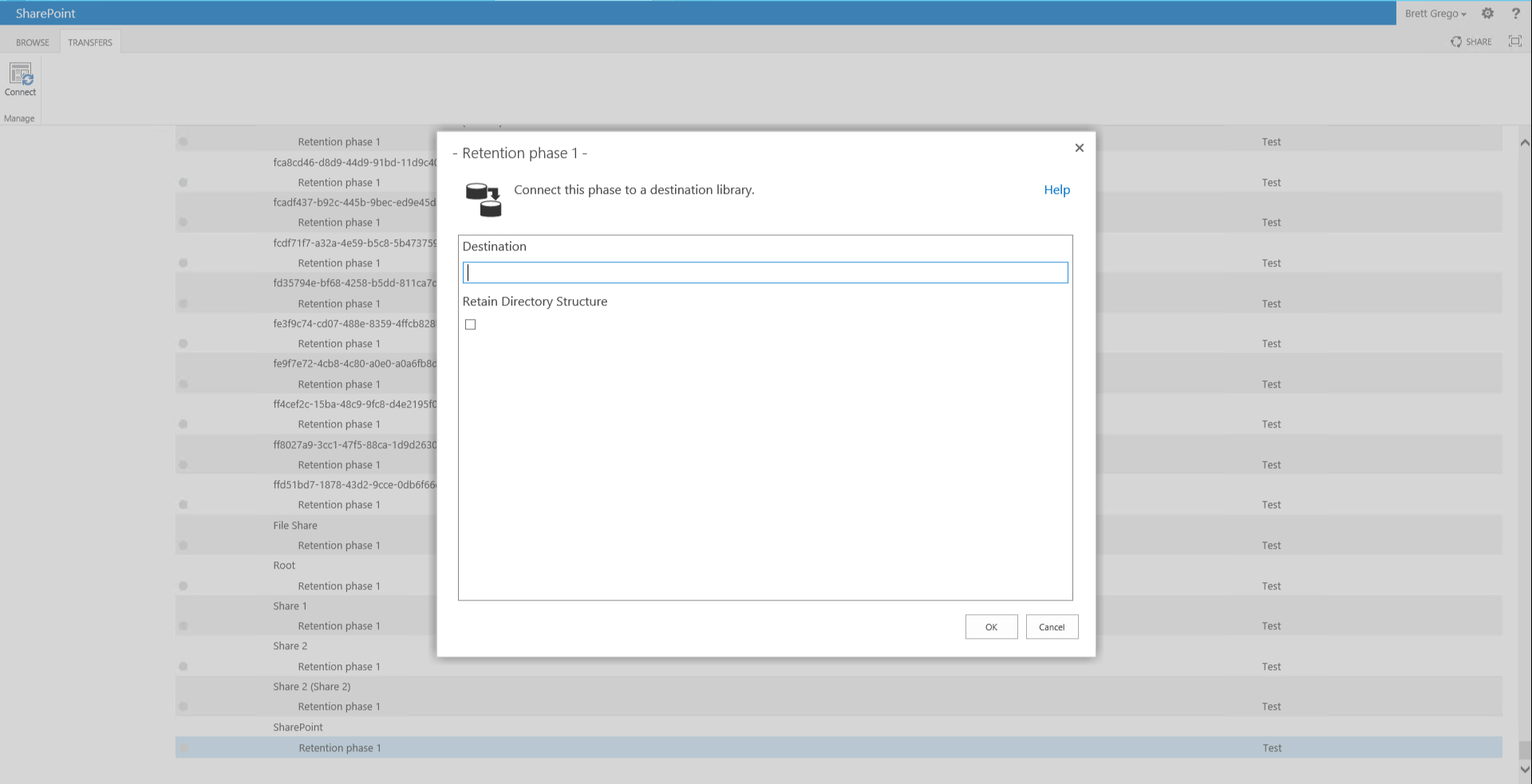 Select the Retention Phase for the Record Class in which you would like to configure the transfer destination.