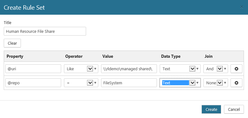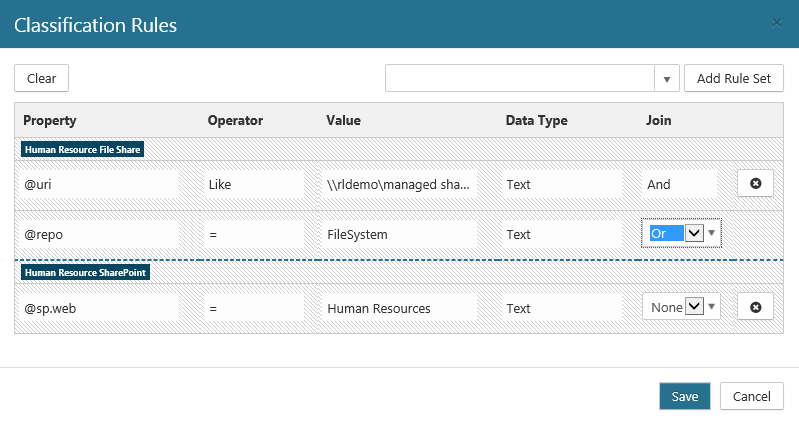 Rule Sets provide the ability to create pre-defined rules that can be used when creating Classification Rules, Triggers, and Legal Hold Rules. This enables a set of rules to be re-used across Classification Rules, Rule Triggers, and Legal Hold Rules.