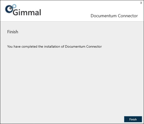 12. After clicking Finish, you will see the initial installation screen showing that the Documentum Connector was installed.