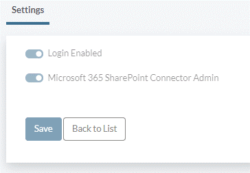 - Login Enabled – allows the user to log in to the Microsoft 365 SharePoint Connector.
